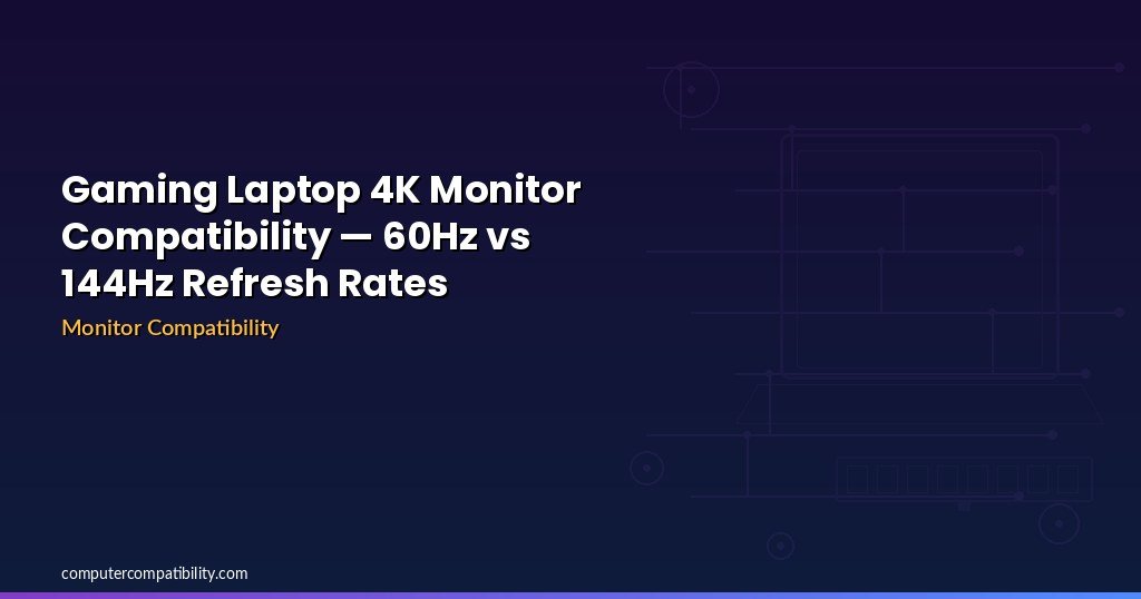 Gaming on a 4K laptop display is a fantasy for most owners: the GPU simply can’t push high frame rates at 4K resolution. A gaming laptop with RTX 4060 can manage 4K 60Hz in undemanding games, but try any AAA title and frames plummet to 30-40 FPS. This leads to a critical question: should you buy a 4K 60Hz monitor (beautiful but limiting) or a 1440p 144Hz monitor (smooth gameplay but lower resolution)? The answer depends on your GPU, your games, and honestly, your budget. This guide breaks down GPU frame rate expectations at 4K vs. 1440p, explains when 4K makes sense, and shows when 1440p 144Hz is the smarter gaming choice. For a wider comparison of external monitors, see our external monitor compatibility guide.