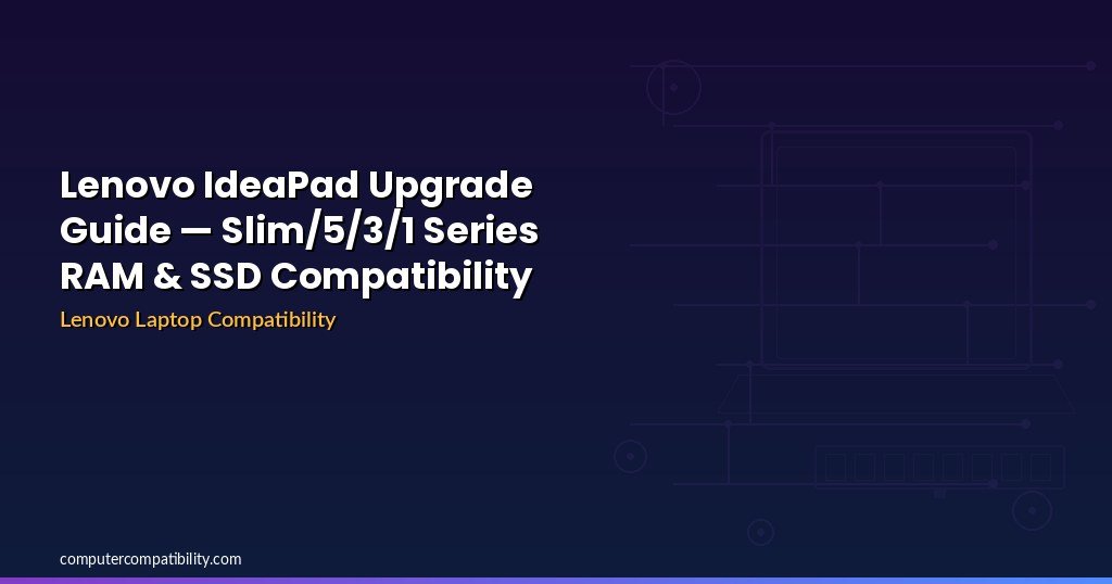Lenovo’s IdeaPad line covers consumer and budget laptops across multiple tiers: IdeaPad 1, 3, 5, and Slim. These laptops prioritize affordability and portability, making them popular with students and everyday users. Upgrading RAM and storage is straightforward and cost-effective. This guide covers IdeaPad models from recent generations, detailing DDR4 vs DDR5 transitions, maximum RAM capacity, and compatible SSD options.