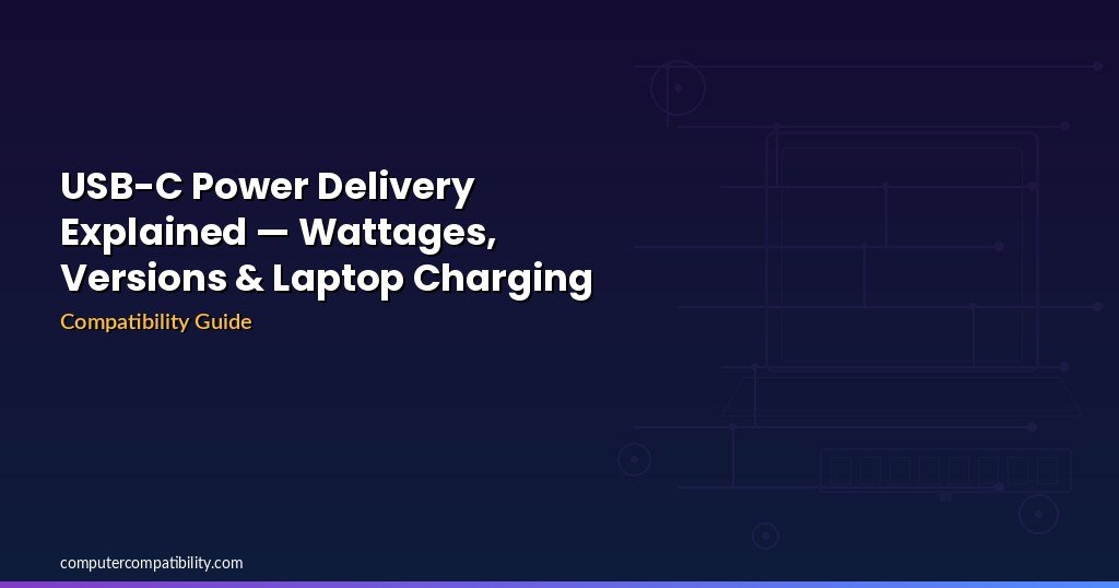 USB-C Power Delivery is now the universal laptop charging standard, but the version numbers (2.0, 3.0, 3.1), wattage ratings, and voltage profiles can feel overwhelming. This guide cuts through the jargon to explain exactly what USB-C Power Delivery does, which version your laptop needs, and how to avoid buying an incompatible charger.